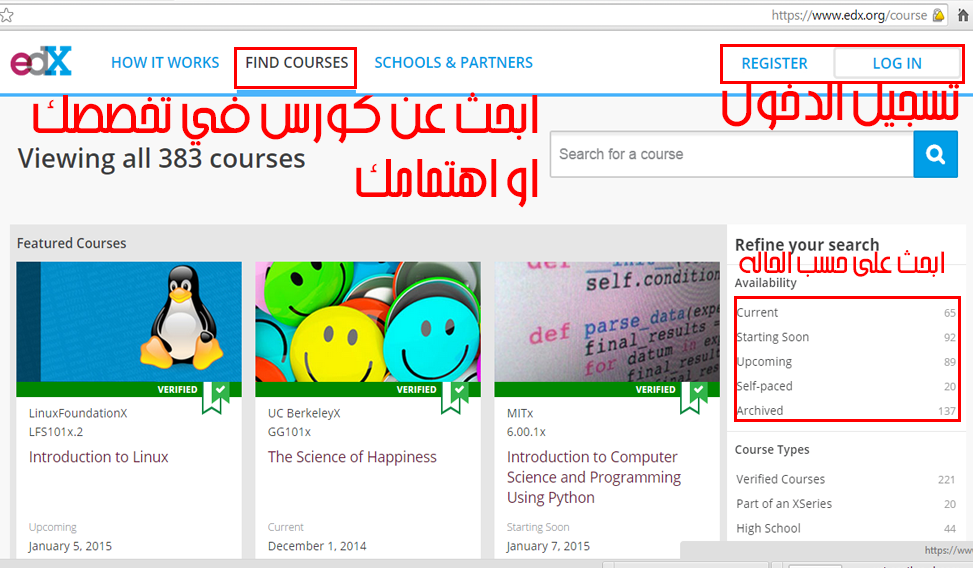 شرح مصور بسيط لكيفية ايجاد الكورسات و التسجيل فيها :