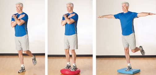 ثالثا تمارين التوازن بحد ذاتها، كرر الاختبار السابق عدة مرات على أنه تمرين ولاحظ مدى تحسنك كل يوم. ويمكنك أداء العديد من التمارين الأخرى باستخدام لوح الاتزان أو بالكرة المطاطية كلما تحسنت أكثر.
