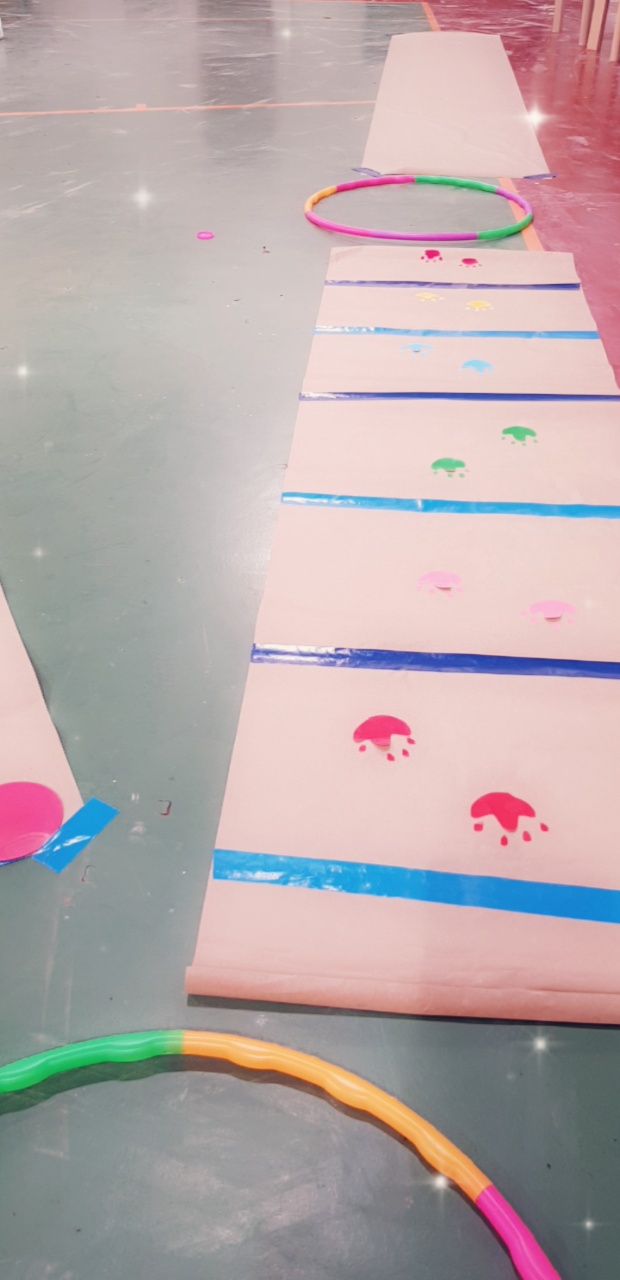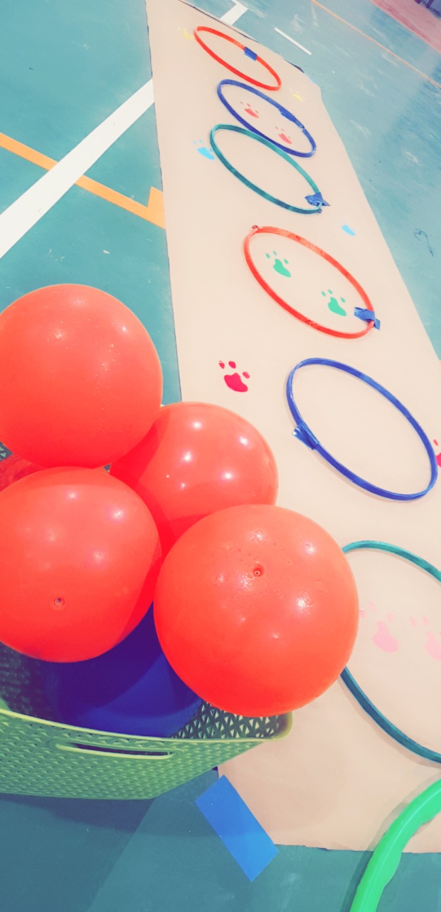 هدف الفعاليه: كانت المحافظة على قوه العضلات و التوازن عن طريق اللعب و جذب الطفل لأداء التمارين بشكل مسل و ممتع عن طريق بعض التصاميم والألوان البسيطه التي تم تصميمها بشكل يدوي وبأبسط الأدوات.