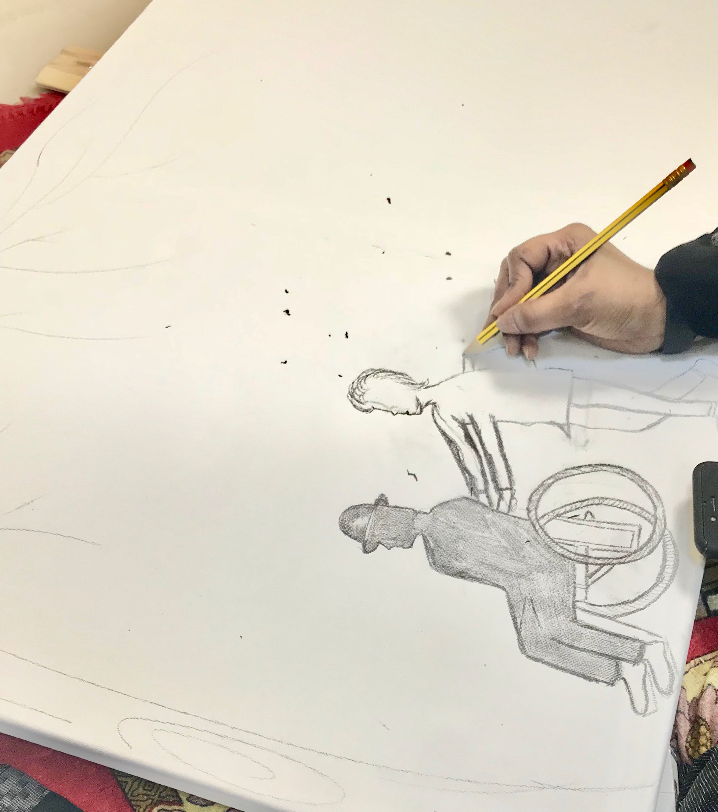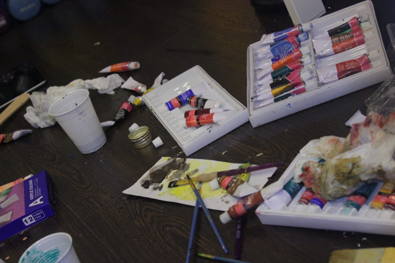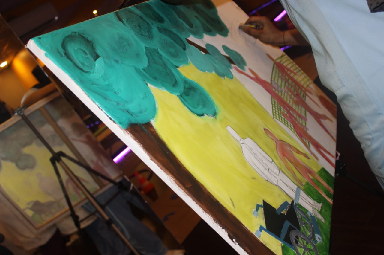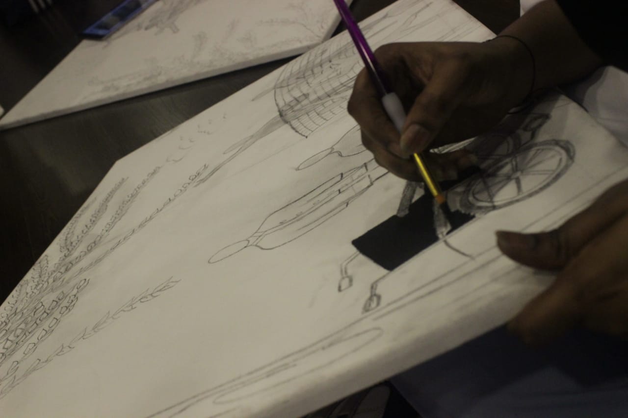 ٢- ركن للرسم حيث تم تجسيد رسالة اليوم العالمي في 3 لوحات فنية نقلت قصة مرئية لدور العلاج الطبيعي في تحقيق أثر نفسي أيجابي و تحسين جودة حياة الفرد.